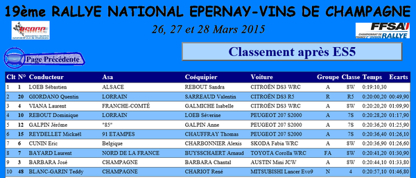 Sebastien Loeb wraz ze swoją szwagierką Sandrą Rebout wygrali wszystkie piątkowe OS-y Rallye Epernay Vins de Champagne. Ich przewaga nad znanym m.in. z WRC Quentinem Gilbertem wynosi prawie 50 sekund. Francuz jedzie Citroenem DS3 WRC przygotowanym przez PH Sport.