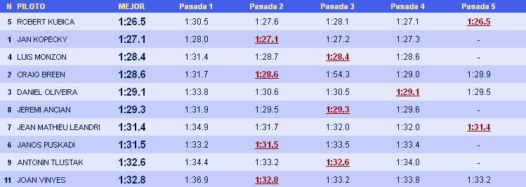 Robert Kubica w 6. przejeździe uzyskał 1:27,0, czyli lepiej od najlepszego czasu Jana Kopecky.