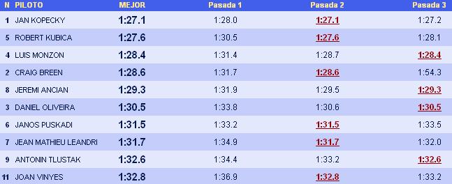 W drugim przejeździe Robert Kubica ponownie był wolniejszy od Jana Kopeckiego. Polak wykręcił 1:27,6 a Czech 1:27,1.