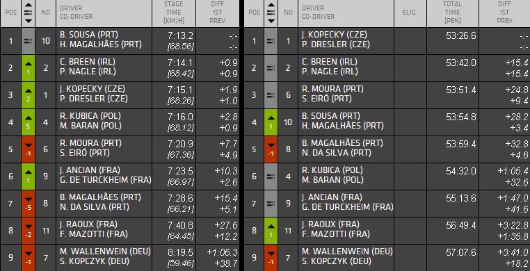 Oto live-timing rajdu ze strony www.fiaerc.com