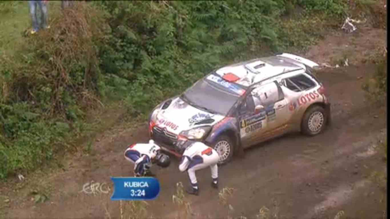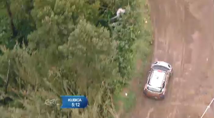 Robert Kubica prawdopdoobnie zaliczył dachowanie na trasie 11.OS-u, ale jedzie dalej.