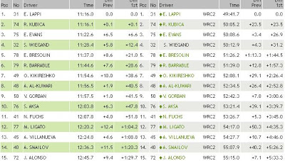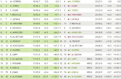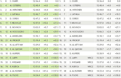 Możemy uznać, że nic więcej się nie zmieni. Robert Kubica zajmuje 17. miejsce na 1. OS-ie i jest 4. w swojej klasie. Polak traci w niej 14,9 sekundy do E. Lappiego. Oto klasyfikacja: