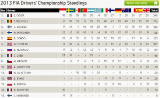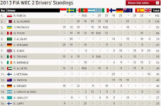 Nie może być podsumowania rajdu, bez klasyfikacji. Niestety dla Roberta, stracił on jedno miejsce w klasyfikacji WRC na rzecz Elfyna Evansa, który w Rajdzie Wielkiej Brytanii zajął 8. miejsce i zgarnął 4 punkty.