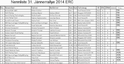 Opublikowana została lista zgłoszeń Jänner Rallye, który rozpoczyna się już 1 stycznia – Widnieje na niej kilka polskich załóg, w tym oczywiście Robert Kubica (nr 1), który pojedzie Fordem Fiestą RRC w barwach RK M-Sport World Rally Team. Na liście nie ma jednak nazwiska pilota, który pojedzie z Robertem w tej imprezie, co może oznaczać, że również pilot na cały przyszły sezon nie został jeszcze wybrany.