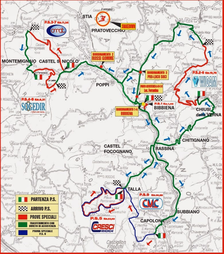 Załoga Kubica/Mazur otrzymała oczywiście 1. numer startowy w 34 Rally Internazionale Casentino. Na liście startowej znajduje się aż 126 załóg w tym 9 w autach WRC. Robert będzie dysponował najlepszym autem, pozostałe to Citroeny DS3, C4, Xsary, Fordy Focusy i Mini. Wśród zgłoszonych zawodników tempa najbliższego Robertowi można oczekiwać po Felice Re i Corrado Fontanie. To zawodnicy z dość dużym doświadczeniem, którzy odnosili sukcesy we włoskich rajdach. Polacy są zdecydowanymi faworytami do zwycięstwa w imprezie.