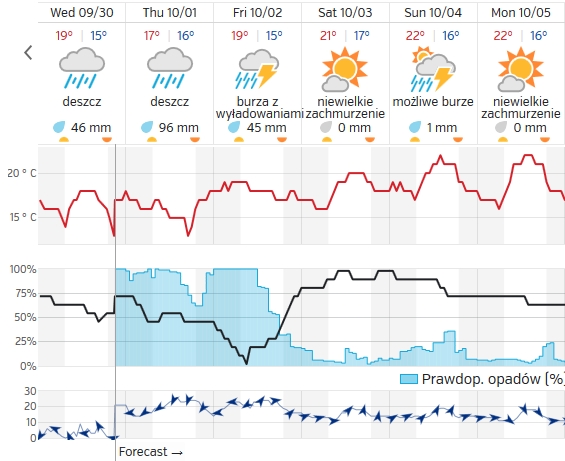 Prognoza pogody nieco zmieniła się od poniedziałku. Padać, ale za to intensywnie, ma padać jutro i w piątek. Od soboty deszcz nie powinien już przeszkadzać kierowcom.
