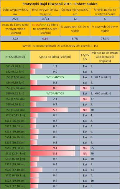 Po wielu rajdach w tym sezonie mogłem napisać, iż widać, że Robert Kubica uczynił ogromny postęp, miał dobre tempo i nie przełożyło się to na ostateczny wynik. Nigdy jednak nie było na to tak mocnych dowodów jak teraz. Zwrócił na to uwagę Lux Perpetua, który w tym sezonie przygotowuje statystyki podczas rajdów i jest w nich lepiej zorientowany niż ja.