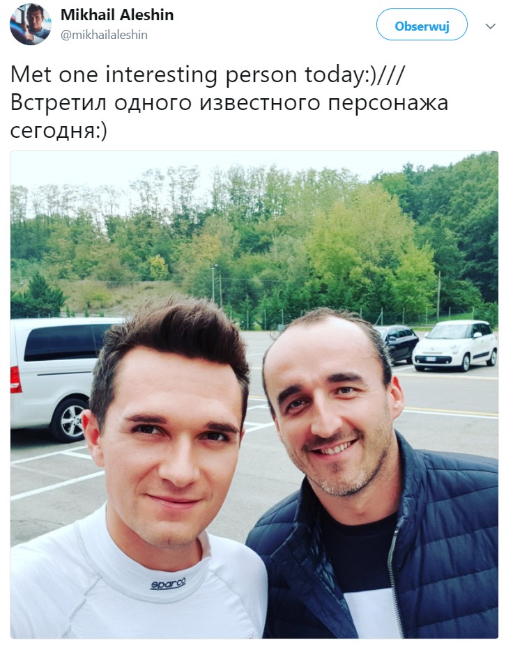 Mikhail Aleshin – kierowca Indycar i LMP2, pochwalił się dziś spotkaniem z Robertem. Najprawdopodobniej zostało ono wykonane na parkingu przy siedzibie Dallary, gdzie Robert Kubica często testuje w symulatorze.