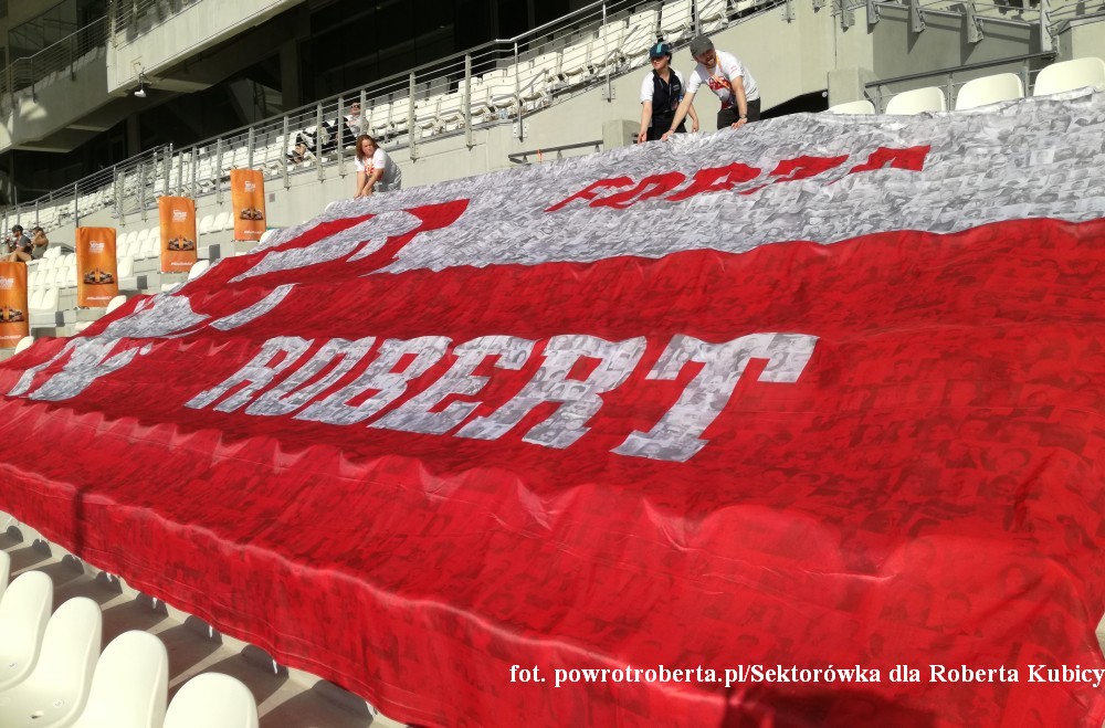 Do meritum jednak: Sektorówka jest, wiele osób ją zauważa, podobnie jak nasze koszulki czy mniejsze flagi. Wsparcie dla Roberta Kubicy jest, a podczas testów powinno być jeszcze lepiej.