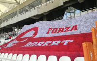Dziś kolejne próby, tym razem już znacznie większej obecności flagi na trybunie, choć zadanie może być trudniejsze, bo o ile wczoraj było pusto, o tyle dziś ludzi będzie znacznie więcej. Będziemy jednak robić wszystko, by wsparcie dla Roberta było widoczne.