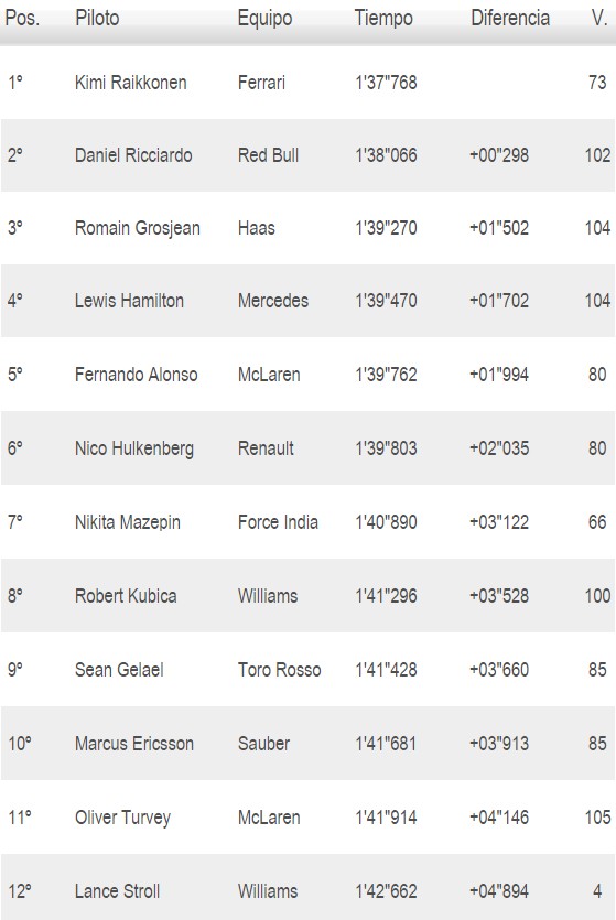 – Robert Kubica pokonał 100 okrążeń (znacznie więcej niż dystans wyścigowy, najwięcej ze wszystkich), uzyskał czas 1:41.296