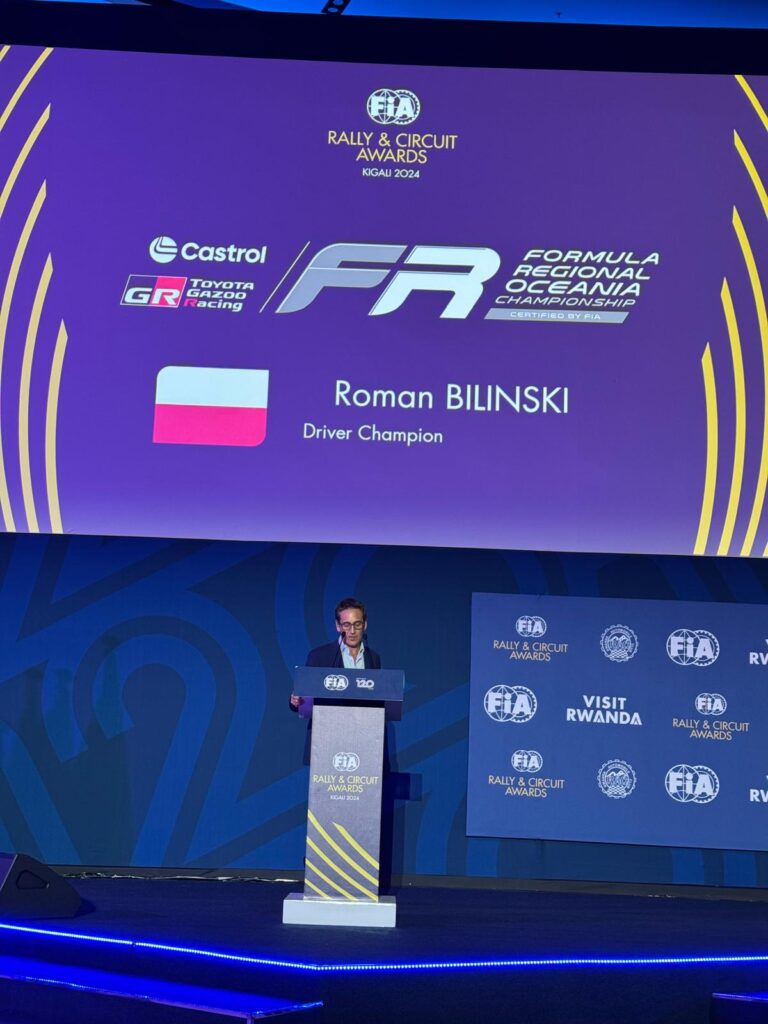 Roman Biliński odebrał nagrodę za zwycięstwo w serii Formula Regional Oceania Championship podczas oficjalnej gali FIA w stolicy Rwandy. To pierwsze tak ważna statuetka dla polskiego kierowcy wyścigowego, który od nowego sezonu będzie ścigać się w Formule 3.