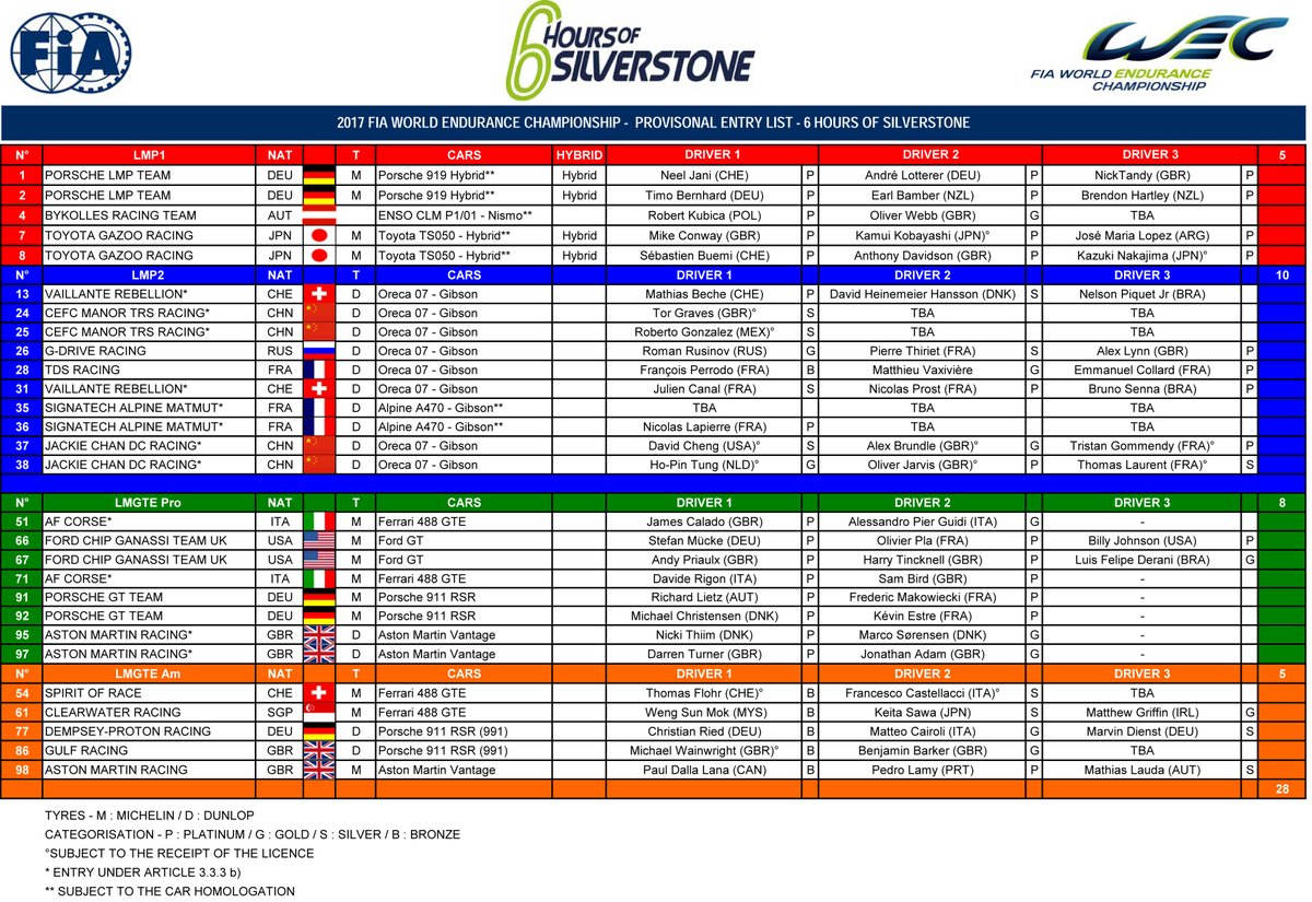 Oto lista zgłoszeń na 6h Silverstone (klik by powiększyć):