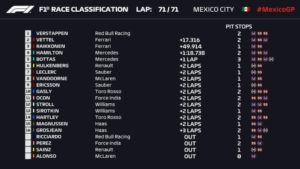 Poniżej zobaczycie wyniki wszystkich sesji Grand Prix Meksyku 2018. Pierwszy trening Drugi trening Trzeci trening