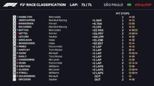 Poniżej zobaczycie wyniki wszystkich sesji Grand Prix Brazylii 2018. Pierwszy trening: Drugi trening: Trzeci trening: